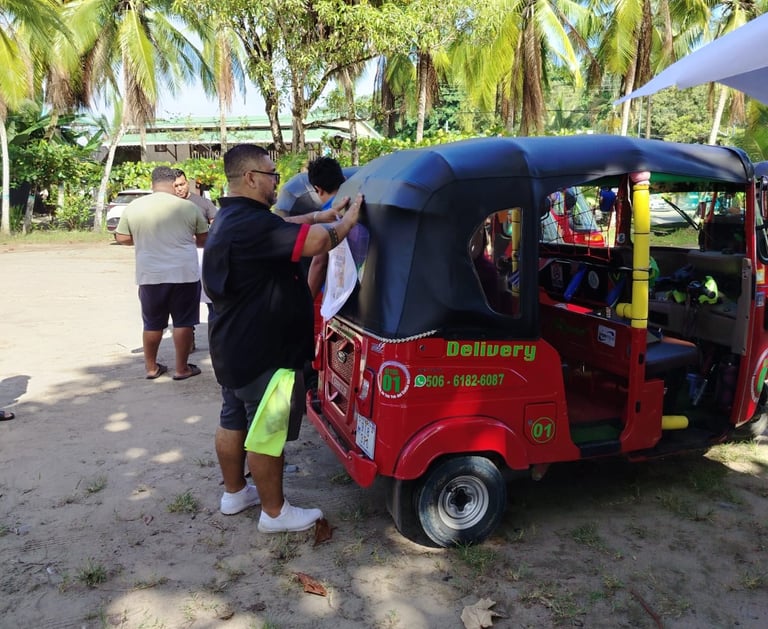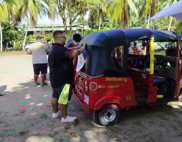 Los tuk tuks llegaron a Talamanca en 2014–2015, cuando apenas existían unos pocos taxis legales. Con solo 1 o 2 vehículos, comenzaron a ofrecer un transporte auténtico, económico y divertido que rápidamente conquistó a turistas y locales.