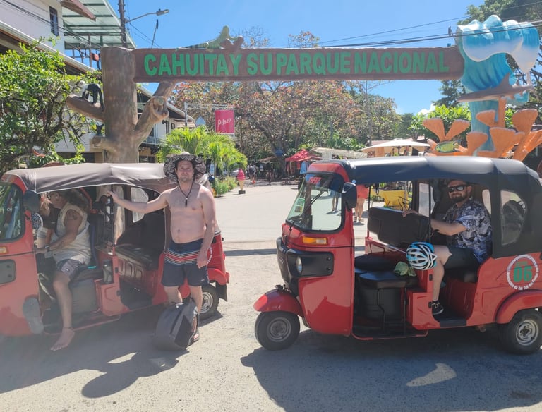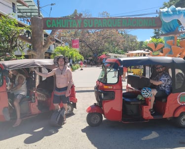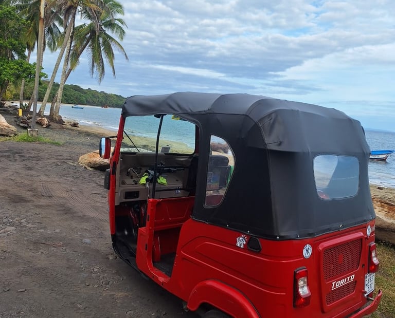 Transporte rápido y confiable en tuk tuks dentro de Puerto Viejo, Cahuita, Manzanillo y comunidades cercanas.